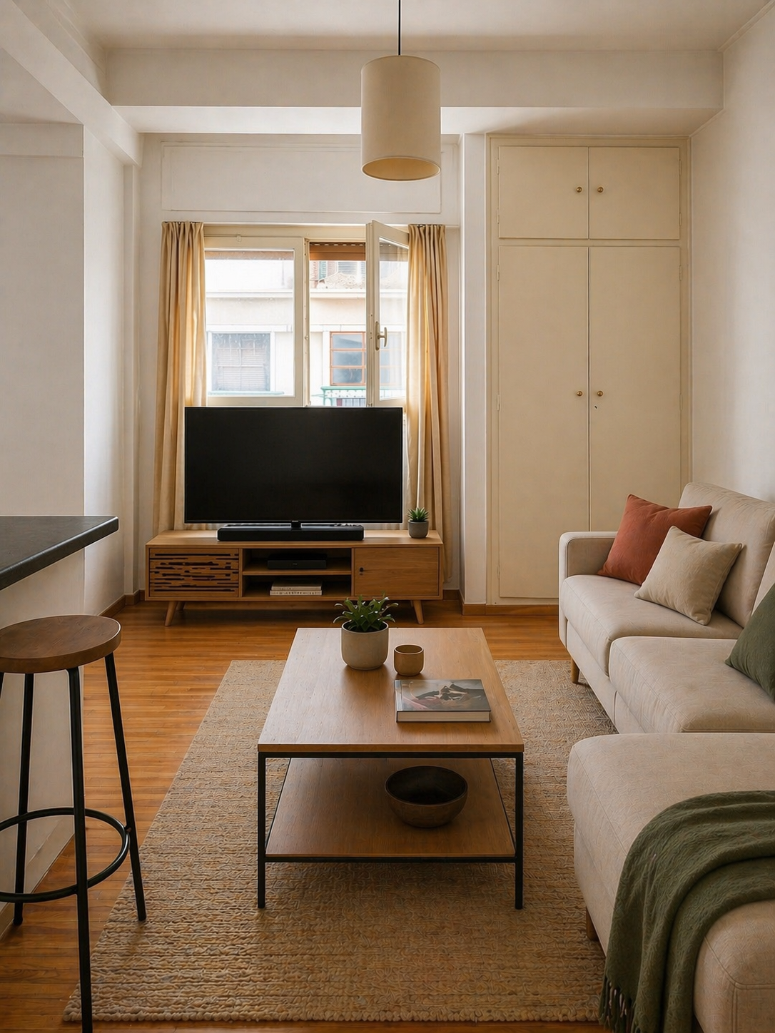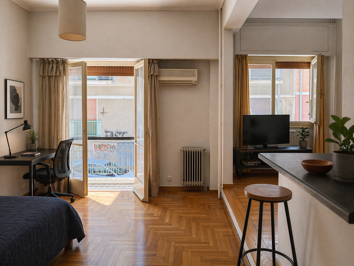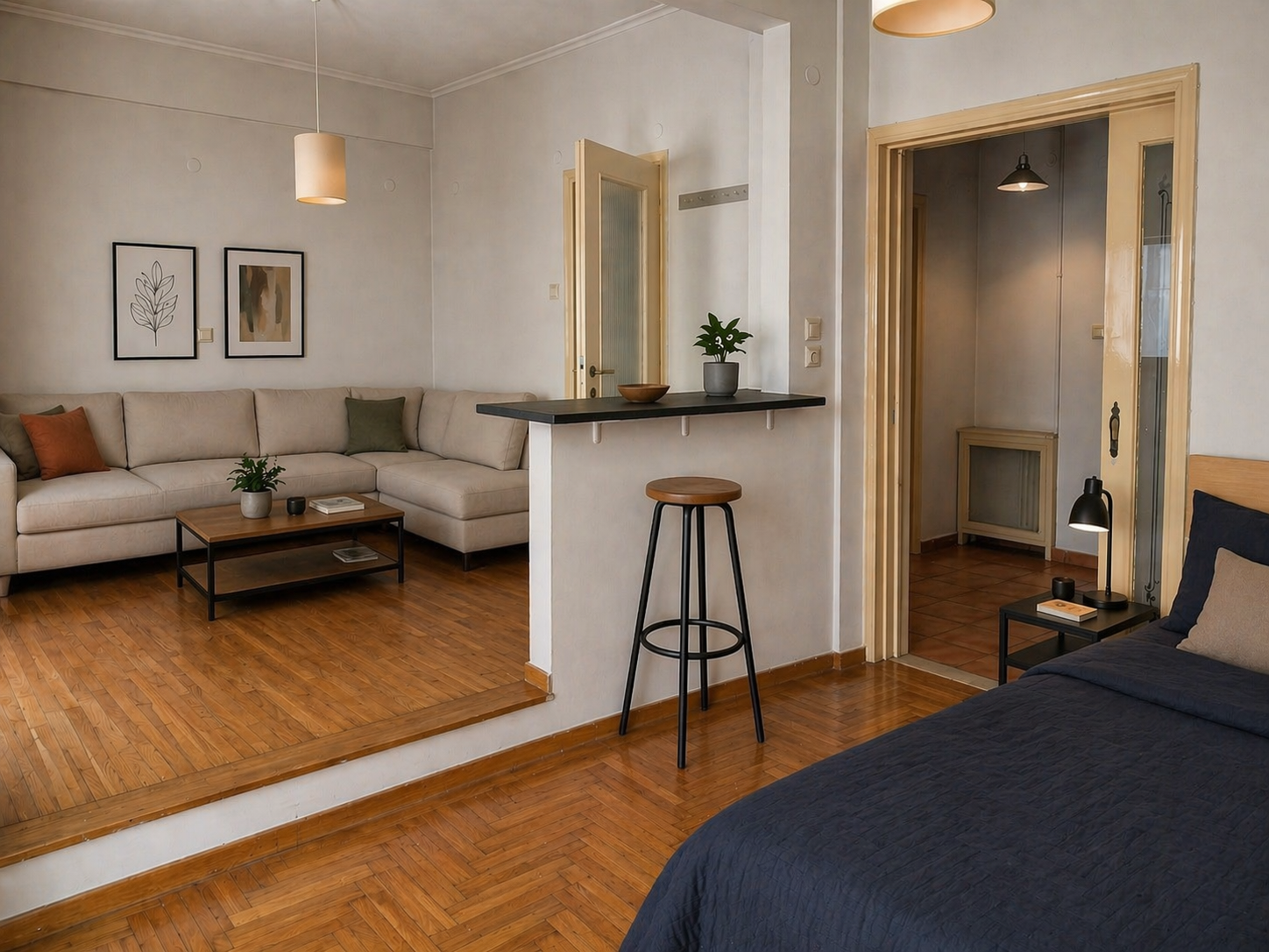 No lift dependency. Accessible from the street. Subject to zoning, potential for professional use. A broader tenant pool — older renters, families with pushchairs, anyone who values walking straight in. Ground-floor flats in central Athens are rarer than they appear.