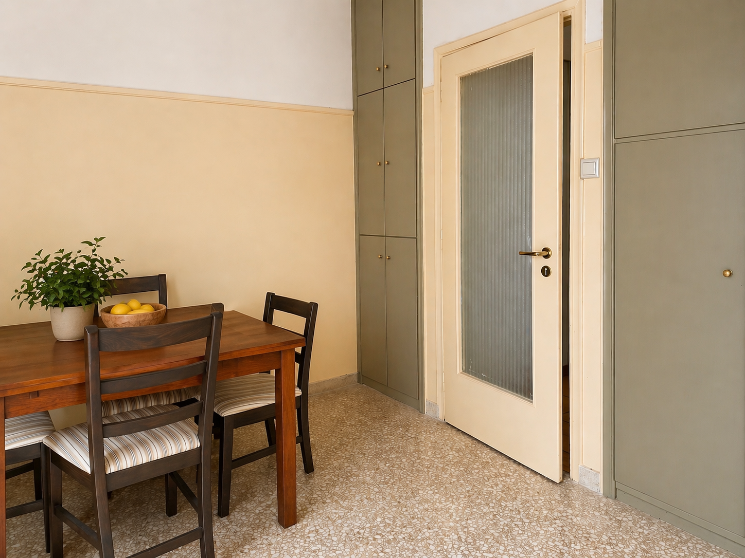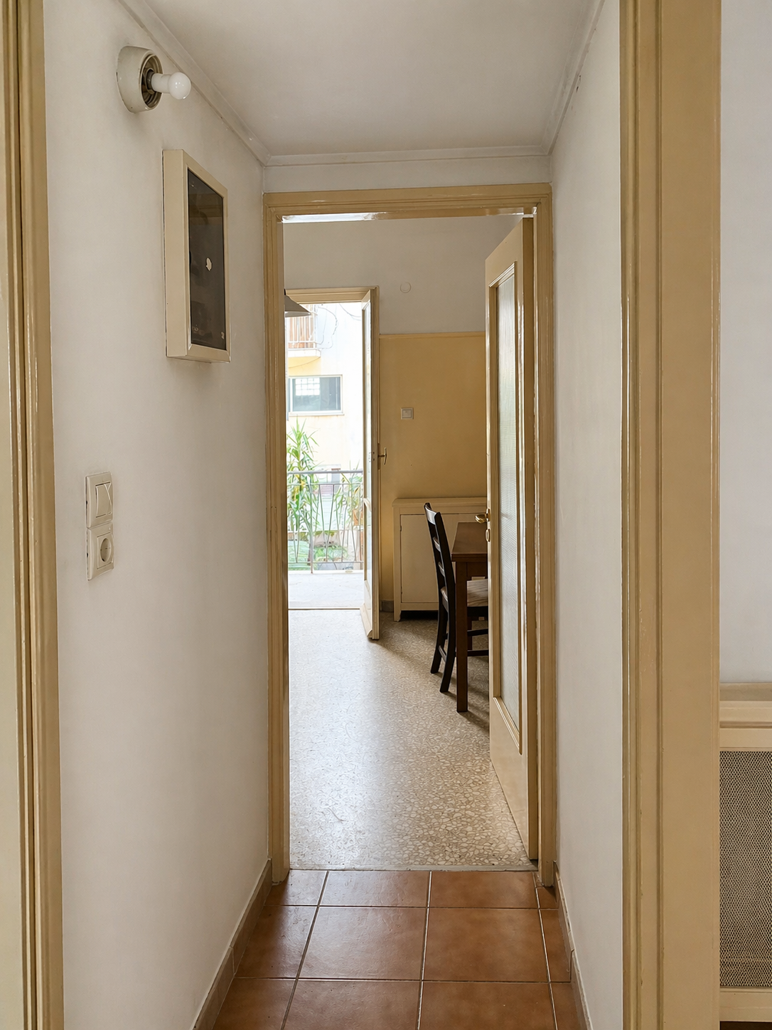 The apartment is liveable in its current state and ready for a cosmetic refresh — new flooring, a kitchen update, a coat of paint — the kind of work that takes a few weeks and adds meaningful value. There is no structural catch, no complicated history. The title is clean, ENFIA is paid (approximately €25 per year), and the building's monthly common charges are €20.